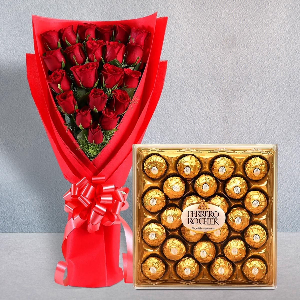 COMBO # 224 RED ROSES BOUQUET W/FERRERO 24 BOX